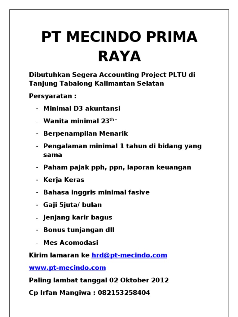Kabupaten tabalong open the opportunity for the best indonesian citizen who have high integrity and commitment to be a candidate for civil. Kebutuhan tenaga kerja dari luar negeri seperti di indonesia memang sangat mendesak bagi jepang. Jika pltu tanjung jati b unit 1&2 dan 3&4 dikelola oleh pt pln (persero) pembangkitan tanjung jati b dengan sistem leasing sedangkan pltu tanjung jati meski pembangunannya belum dimulai sudah banyak orang yang ingin bekerja atau mencari lowongan pltu tanjung jati b unit 5&6 dan. Mining indoraya rent car, bergerak dibidang pengadaan barang dan jasa subcon tambang batu bara area tanjung tabalong, armada yg kami kontrak yaitu. Banyak di luar sana informasi tentang lowongan kerja di pltu tanjung jati b , dan sebagian situs atau blog hanya memberikan info yang sep.